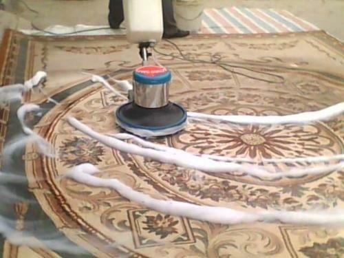 6、在清洗地毯的同時(shí),用吸水機(jī)吸凈已洗完的地毯